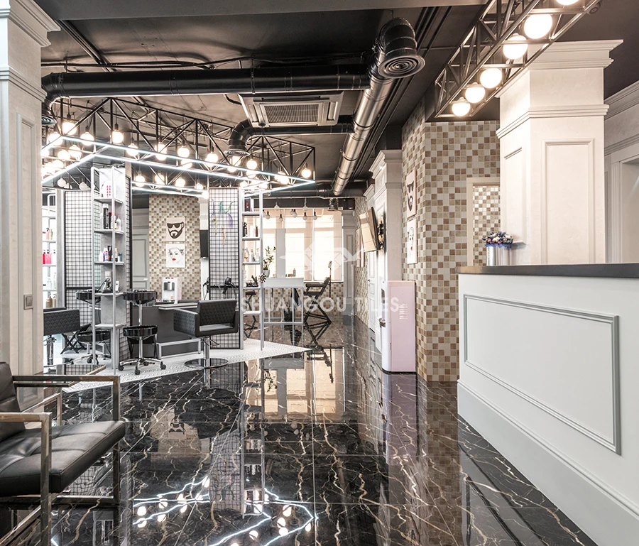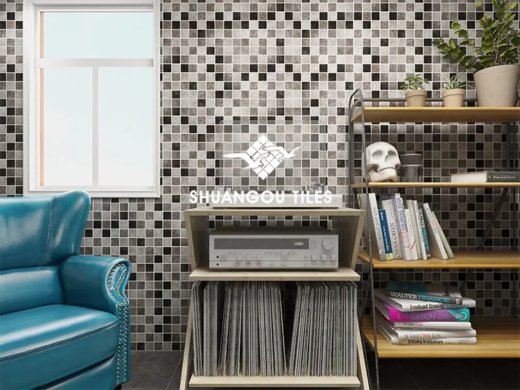 From material scale, we have porcelain in solid color and kiln pattern for your choice and also glass mosaic like crystal, colored mosaic, pearl feeling, marble look, gold décor…..