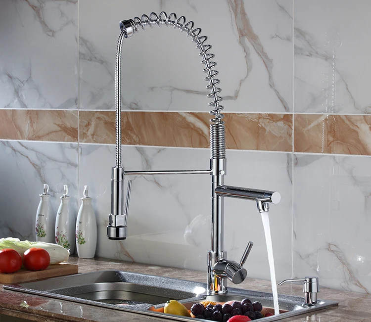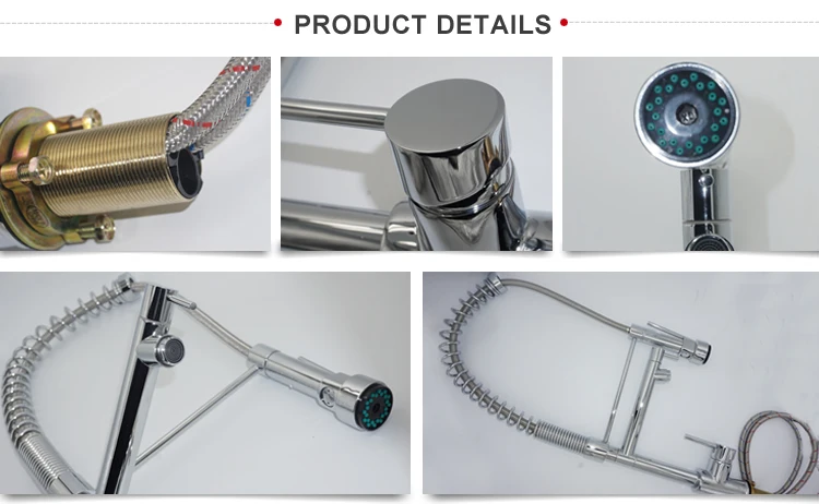 Commercial Pull Out Flexible Water Mixer 3 Way Pre Rinse Sink Taps Spring Kitchen Faucet with Pull Down Sprayer