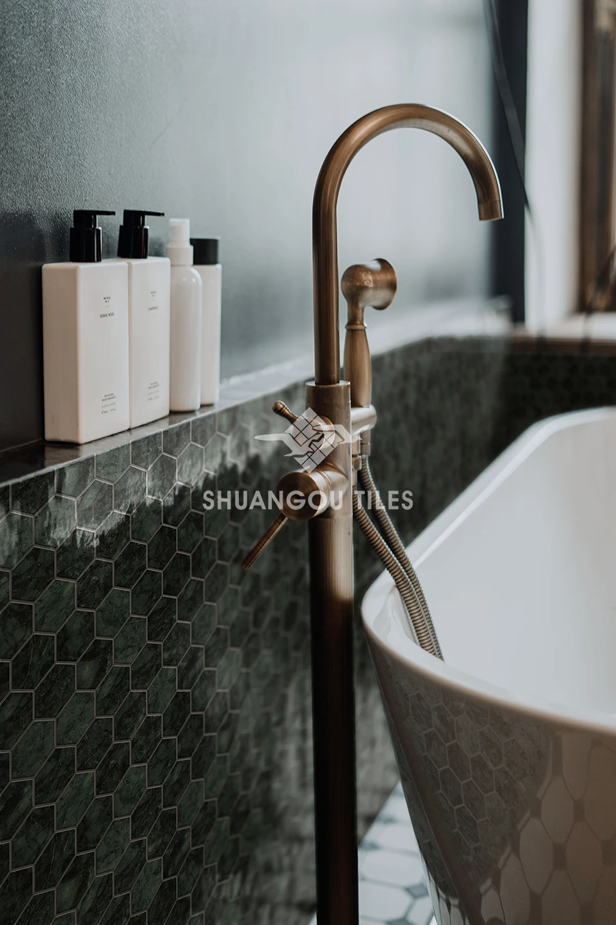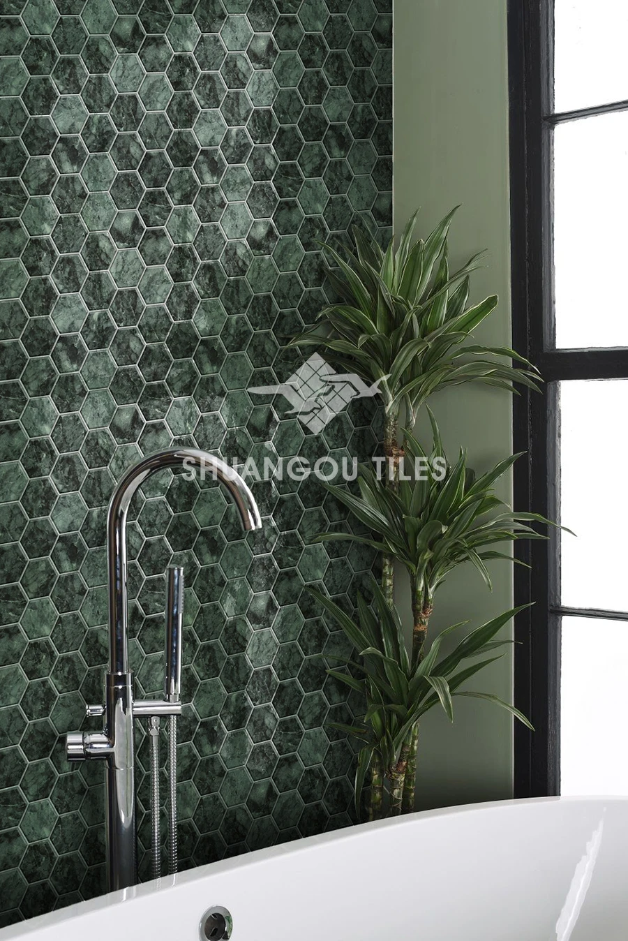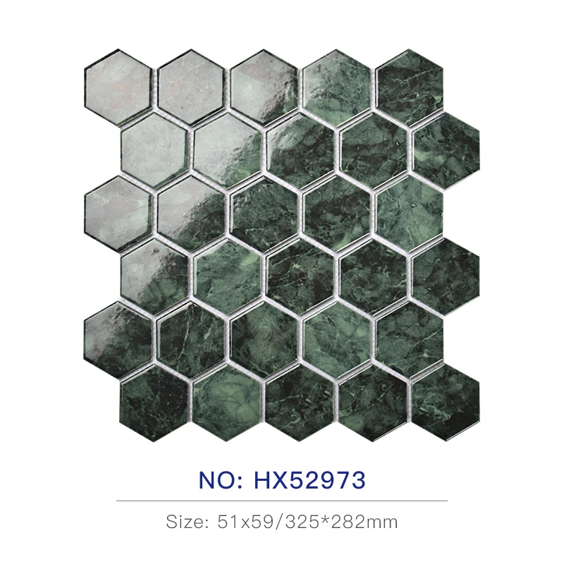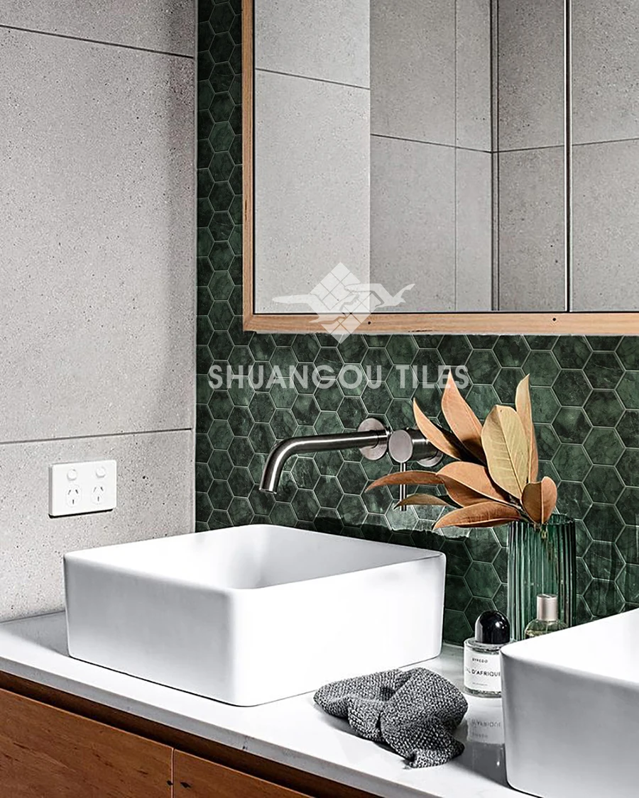 Hexagon Stone Green Porcelain Bathroom Wall Mosaic Tile