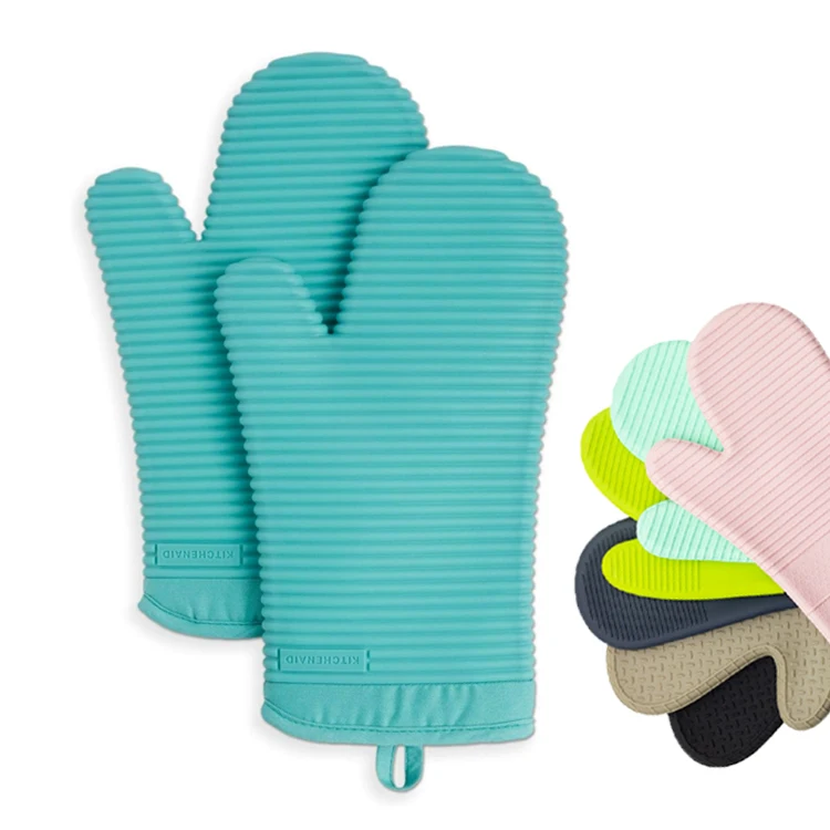 High Heat Resistant BBQ Gloves Waterproof Mitt Potholder for Cooking Kitchen Non-Slip Pot Holders Custom Silicone Oven Mitts