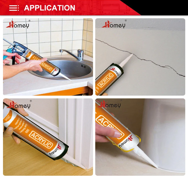 Homey 560 paintable sealant is a general purpose, water based latex Acrylic Sealant for caulking, sealing and decoration uses in waterproofing , gap filling, wood frame joints, doors&windows, painters sealant for interior works.