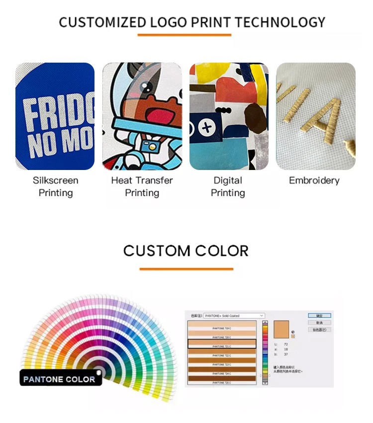 A: Our main material are pp non woven,pp woven,polyester,RPET,nyon.We can also choose material as the customers’ required.