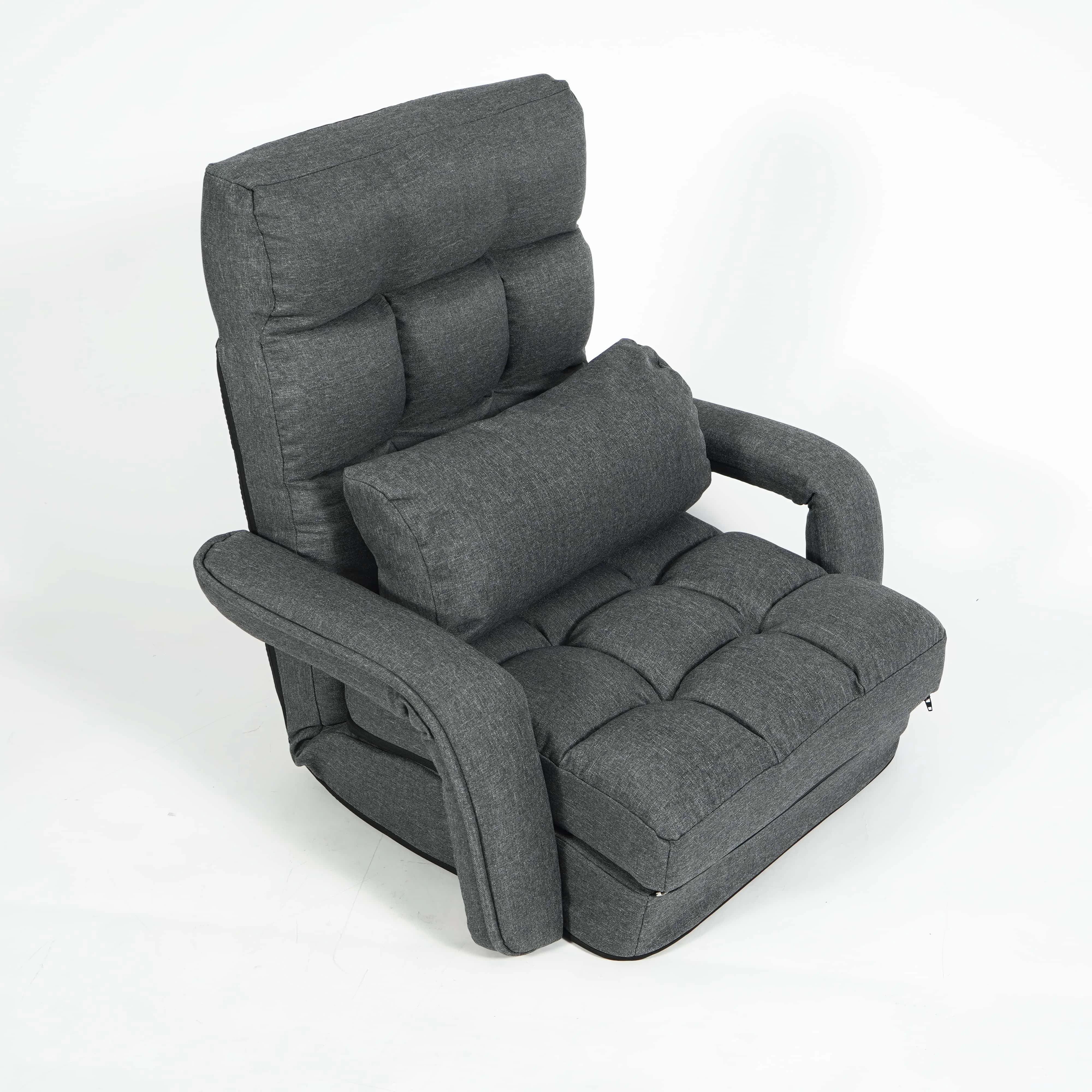 Hitree Chaise Lounge With Armrest and Pillow for Living Room Adjustable Backrest Recliner Floor Chair Folding Lazy Sofa