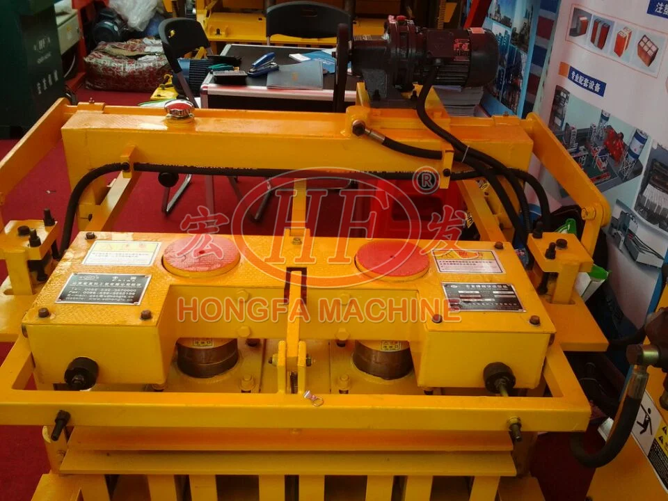 HONGFA QMJ-4A brick making machine is a moblie machine.It has larger productivity than the other small block machines. This Machine is manufactured on the base of technical modifications to the original block shaping machines, that is changing the former one-time-vibration into twice-vibrations of molding core, So the block density becomes higher, shaping speed quicker and block strength more even ,This model of machine can be suitable to the customers who have any kinds of existing cement working sites.And the consumption pallets can be saved.Item | Size(mm) | Molding cycle | QTY/Mould | Pcs/8 hours | |||