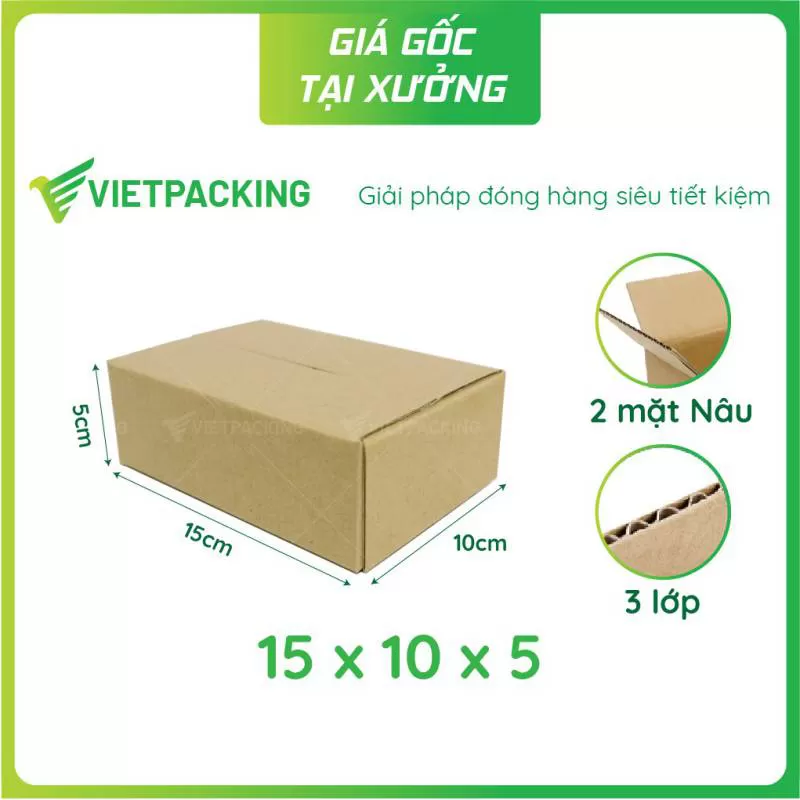 Hộp carton 15x10x5 giao hàng COD giá tốt, hỗ trợ in ấn thương hiệu. Sản phẩm của Vietpacking với chất lượng gia công cao, đáp ứng mọi tiêu chuẩn của khách hàng.Shipping/Vận chuyển