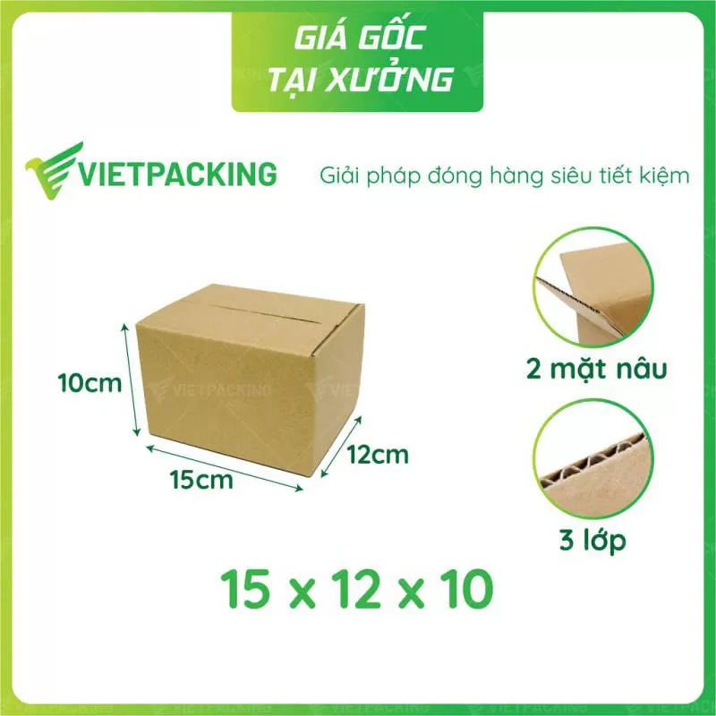 Hộp carton 15x12x10 giá tốt chất lượng, hỗ trợ in ấn thương hiệu. Sản phẩm của Vietpacking với chất lượng gia công cao, đáp ứng mọi tiêu chuẩn của khách hàng.
