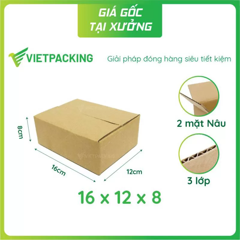 Hộp carton 16x12x8 giá tốt chất lượng, hỗ trợ in ấn thương hiệu. Sản phẩm của Vietpacking với chất lượng gia công cao, đáp ứng mọi tiêu chuẩn của khách hàng.Shipping/Vận chuyển