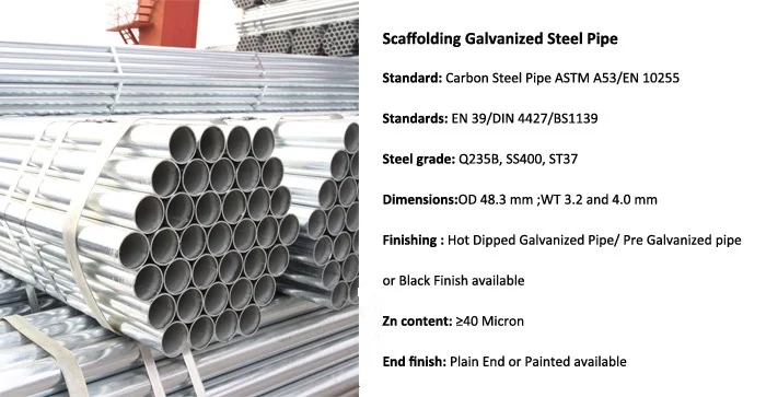 Commodity | Hot Dipped Galvanized Scaffolding Pipe 48.3MM for Construction Buildings Galvanized Steel Tube GI Pipe |