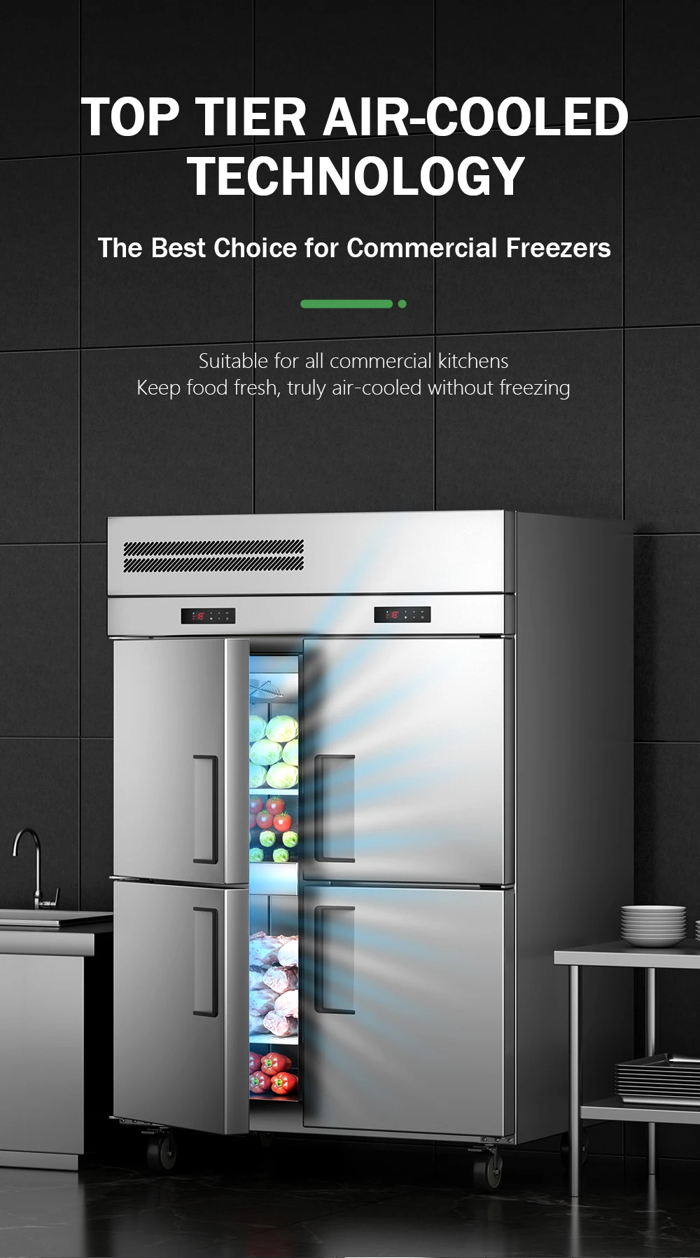 Hot Selling 4 Doors Commercial Freezers Refrigerator 201 Stainless Steel Refrigeration Equipment Kitchen Freezer