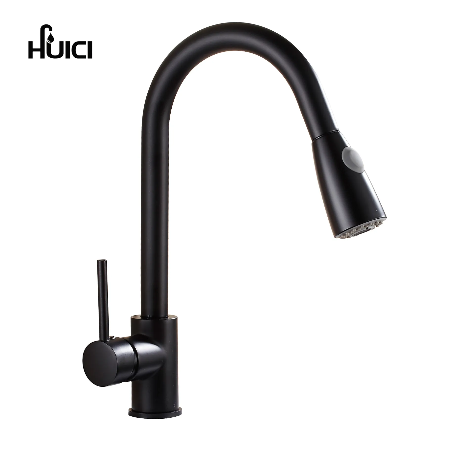 Hot Selling Black Brass Kitchen Sink Faucet with Water-Adjustable Big Spout Single Handle Pull down Spray Ceramic Valve Core