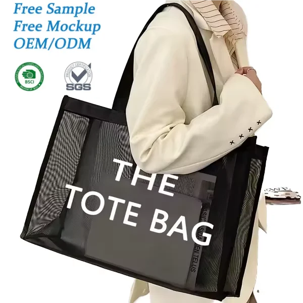 Hot Selling Reusable New Fashionable Storage Shopping Poly Mesh Handled Custom Beach Tote Bag for Women