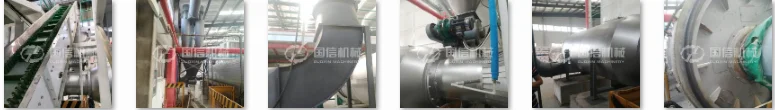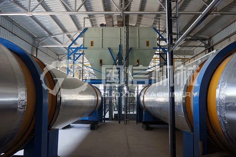 Thematerialis transported by the scraper conveyor to the inside of the roller drying machine. and the front is equipped with a hot blast stove. The generated hot gas enters the dryer through the fire separating device, and the material is dispersed through the low-speed rotation and bending plate.so that the high-temperature airflow passes through the material and make heat exchange, the roller drying machinehas a certain angle of inclination, and sufficient air volume to drive the material forward.Finally, the dried material is discharged from the discharge port.The temperature generated by the heat source enters the long refractory lining chamber to maintain a low temperature. Adding auxiliary air to the chamber to maintain a lower temperature level.
