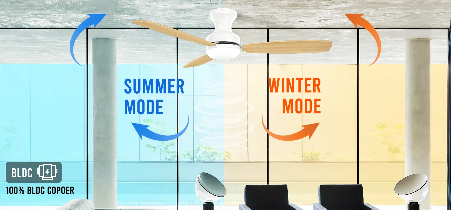 The ceiling fan with a powerful DC motor features a silent and reversible design, offering 6-speed options and an airflow of over 3000 CFM. Compared to traditional AC motors,reducing energy costs while operating smoothly and quietly. The unique design of this providing downward airflow in summer and upward airflow in winter, making it perfect for year-round use. Whether it's the hot summer or cold winter, it can create a comfortable environment for you to enjoy a pleasant experience.