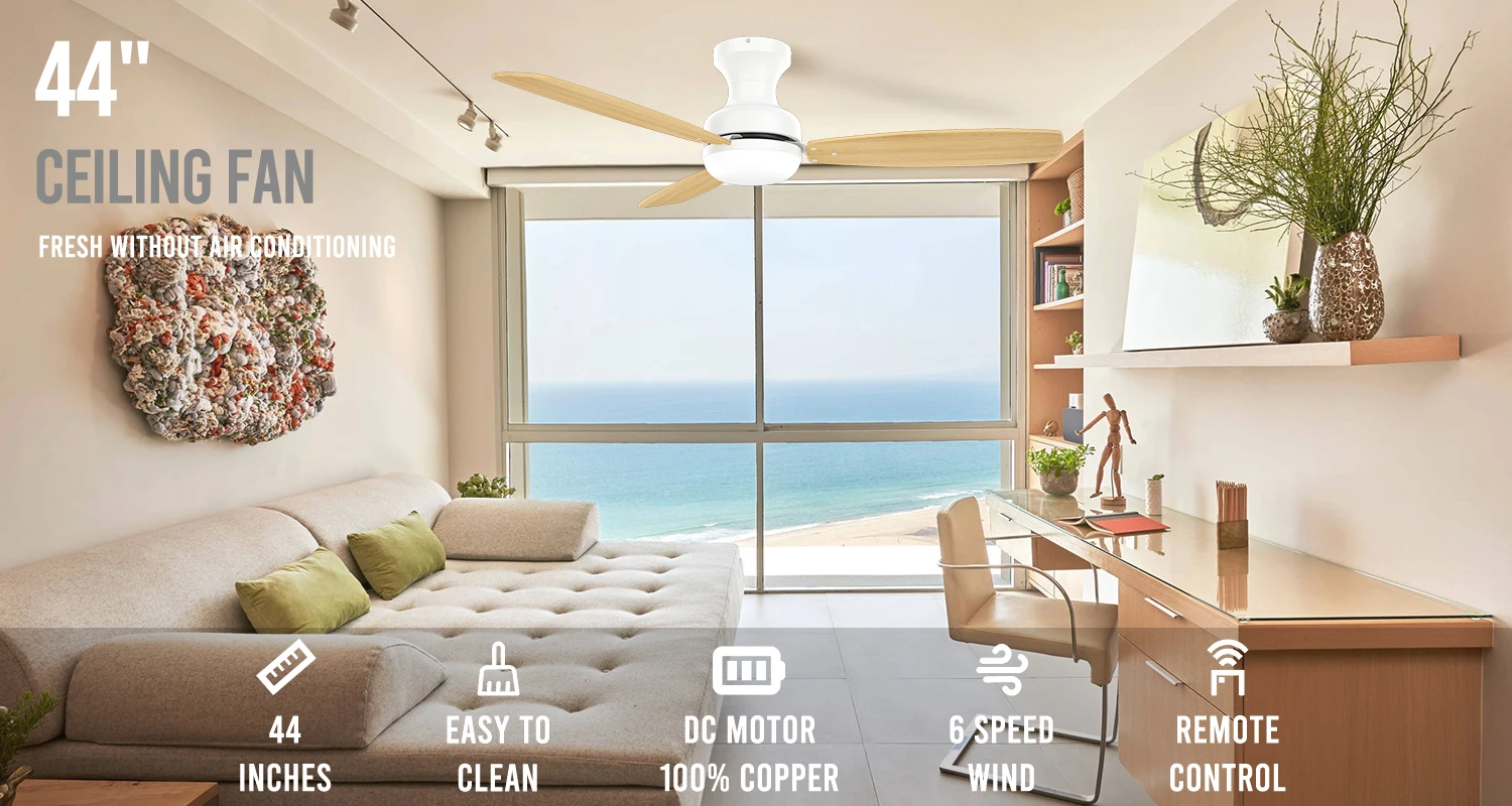 Decorate your home with KBS ceiling fan! While bringing you coolness and comfort, it also becomes a beautiful decorative piece for your home. Our 44 inch small ceiling fan with light remote control has efficiency energy , which can avoid 80% of electricity loss compared with traditional fans.