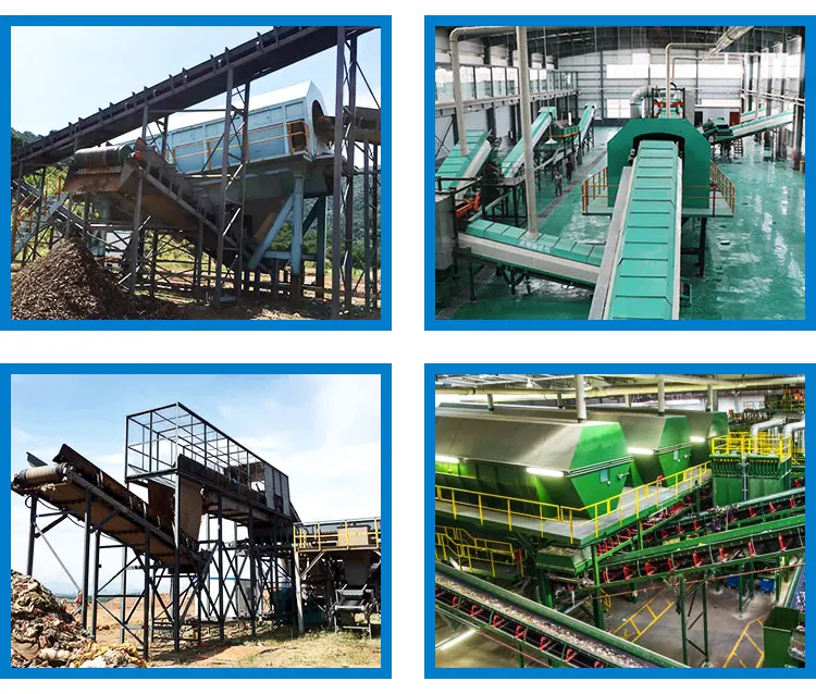 1. The waste/garbage will be evenly sent to the msw sorting machine trommel screen by the feeding conveyor. 2. By trommel screen msw sorting machine,waste will be sorted into two-part. one is that diameter is large than 50mm, such as bottles, plastic, shoe sole, clothes and so on. another one is less than 50mm such as small stone and soil. At the same time, the waste metal will be picked out by a strong magnetic separation machine.