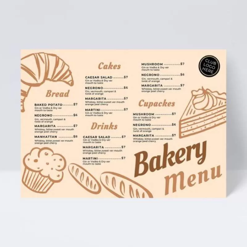 In menu tiệm bánh ngọt chất lượng cao tại Hà Nội với Hãng In Hoa Long! Thiết kế ấn tượng, in sắc nét trên nhiều chất liệu (giấy couche, offset, mỹ thuật).Shipping/Vận chuyển