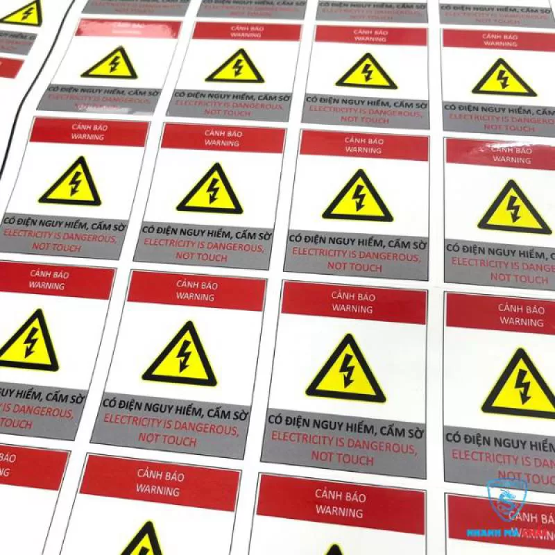 In tem cảnh báo Hà Nội dán sản phẩm hay các khu vực làm việc hạn chế được các rủi ro. Liên hệ xưởng in hoa long 0903.400.469 để được tư vấn!Shipping/Vận chuyển