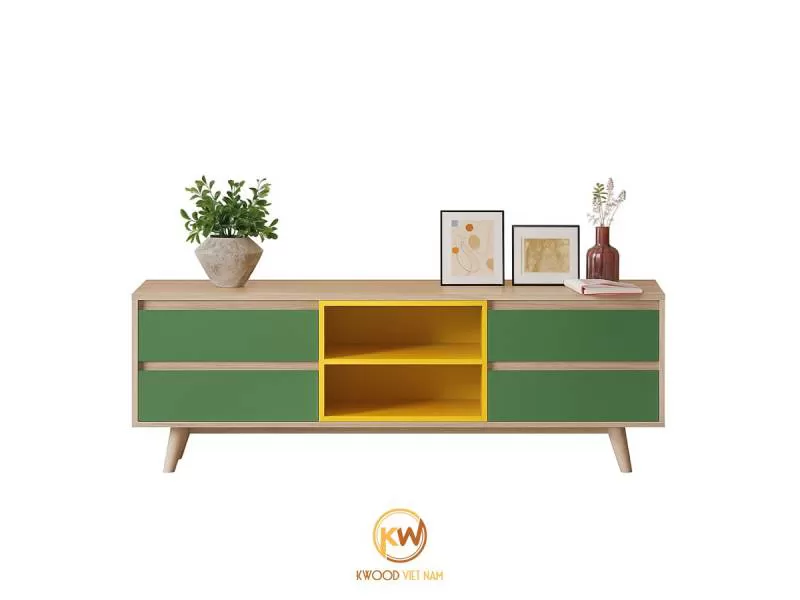 Sản phẩm kệ tivi gỗ công nghiệp phong cách Color Block - KTV92 tại Kwood Việt Nam phù hợp với các căn hộ trẻ trung, cá tính hoặc không gian sáng tạo.