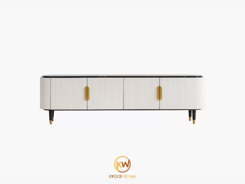 Sản phẩm kệ tivi gỗ công nghiệp phong cách tân cổ điển - KTV81 tại Kwood Việt Nam với thiết kế cao cấp phù hợp cho phòng khách tân cổ điển, hay luxury.