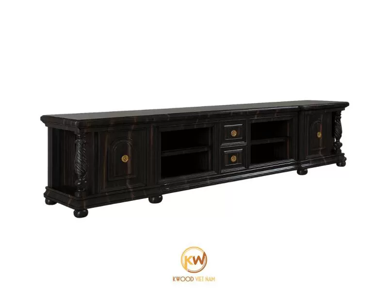 Sản phẩm kệ tivi gỗ mun tự nhiên cao cấp cho phòng khách - KTV77 của Kwood Việt Nam phù hợp cho không gian cổ điển hoạch truyền thống.