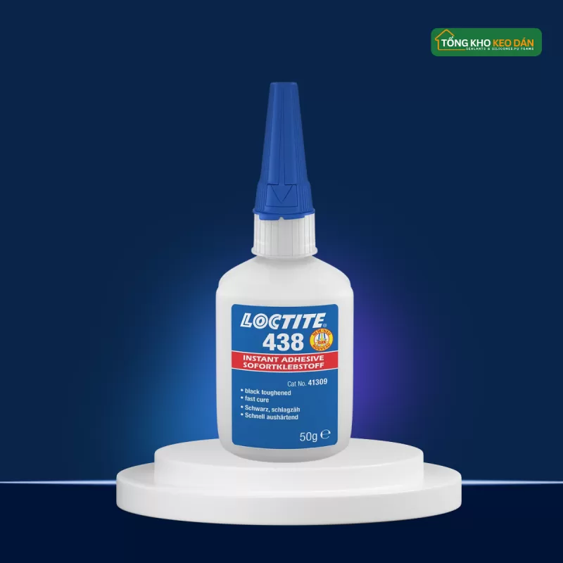 Keo dán nhanh Loctite 438 tức thời 1 thành phần, màu đen, gốc ethyl có độ bền va đập cao, phù hợp với nhựa, cao su, kim loại cũng như các bề mặt xốp.Shipping/Vận chuyển