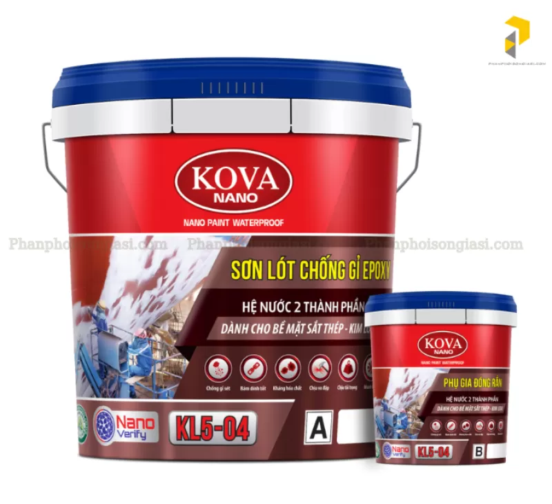 Sơn lót chống gỉ Epoxy hệ nước Kova Nano Kl5-04 là sơn epoxy chống gỉ hệ nước 2 thành phần. Ứng dụng tốt lên cấu kiện kim loại. Được dùng để lót cho các bề mặt sắt thép, kim loại trong nhà và ngoài trời, bồn chứa, đường ống, cửa sắt, cầu cống, biển báo giao thông.