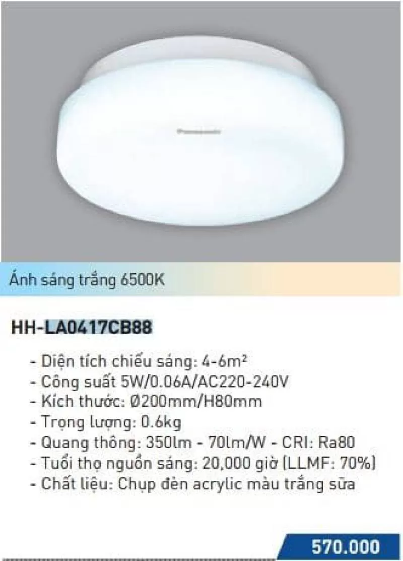 LED ốp trần nổi 5W NNNC7622188 NNNC7623188 NNNC7627188 panasonic Thương hiệu: Panasonic, Bảo hành: 2 năm, Công suất 24W - AC 220 - 240V...