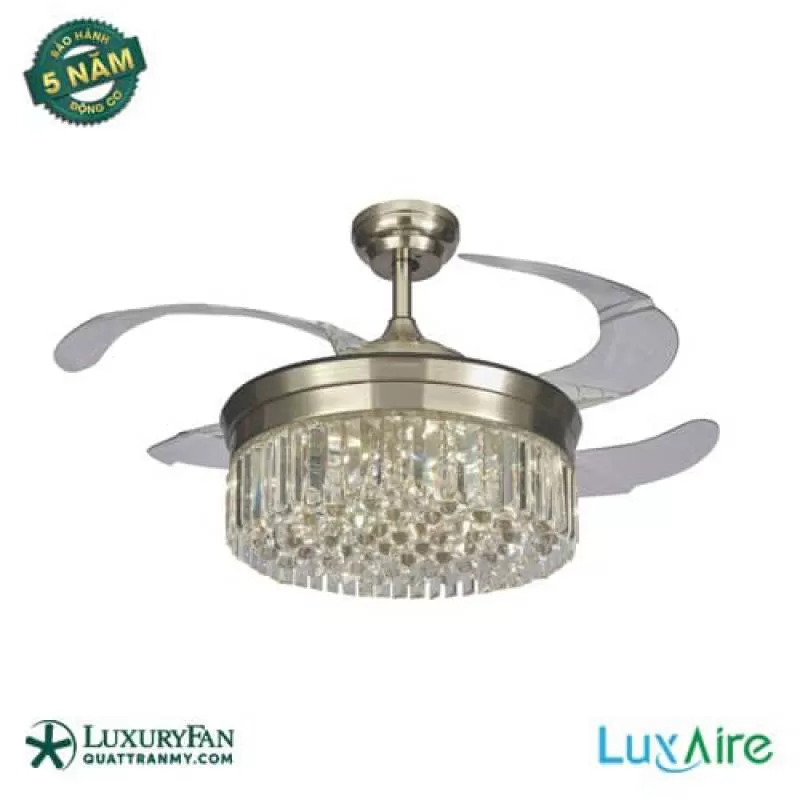 Tham khảo mẫu quạt LuxAire Crystal BN được thiết kế tích hợp 2 trong 1 vừa làm mát vừa chiếu sáng, dễ dàng kết hợp với mọi không gian.