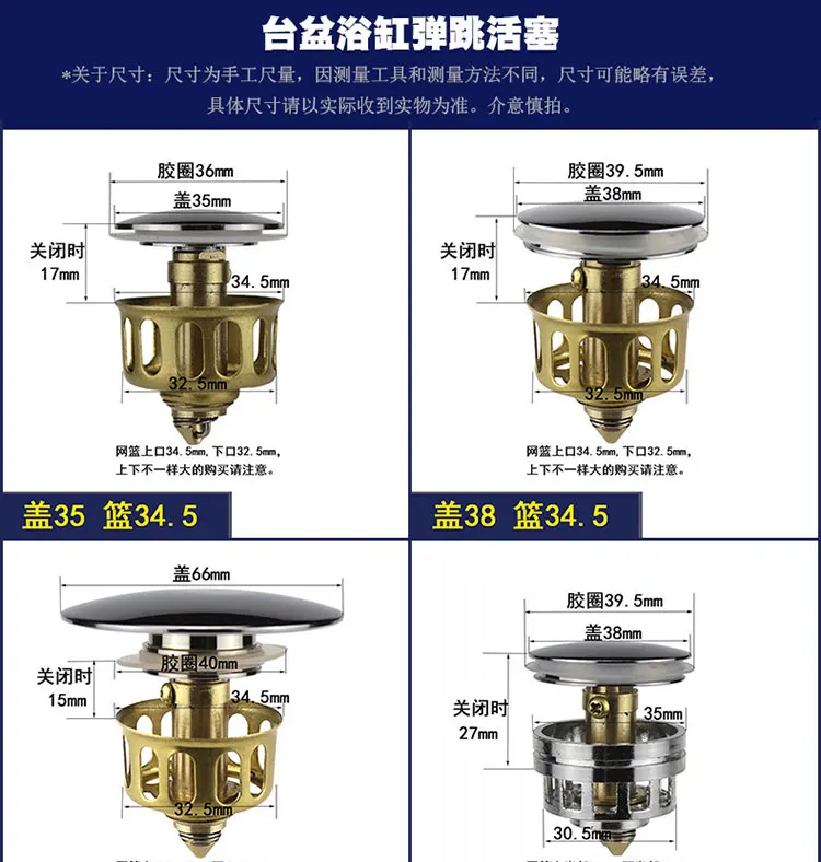pop-up cover with filter screen brass material different size