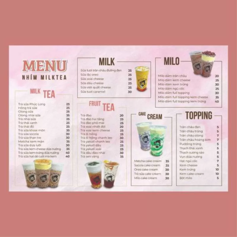 Mẫu in menu trà sữa giá rẻ chất lượng tại Hà Nội – In Hoa Long