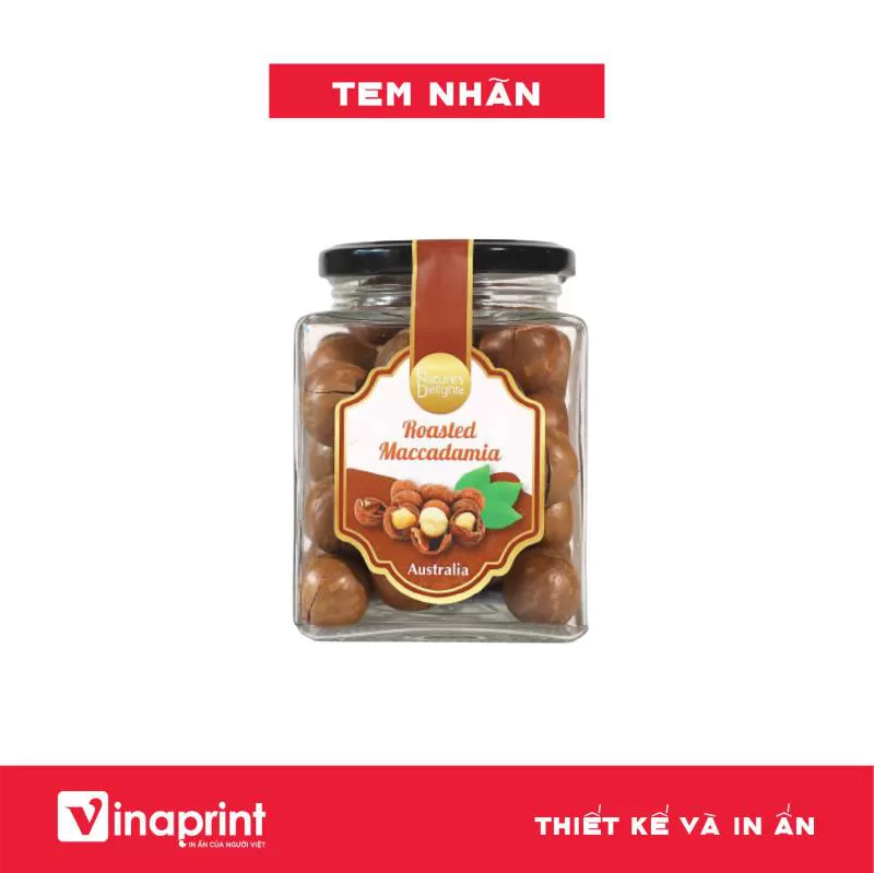 Mẫu tem nhãn trên hộp đựng macca
