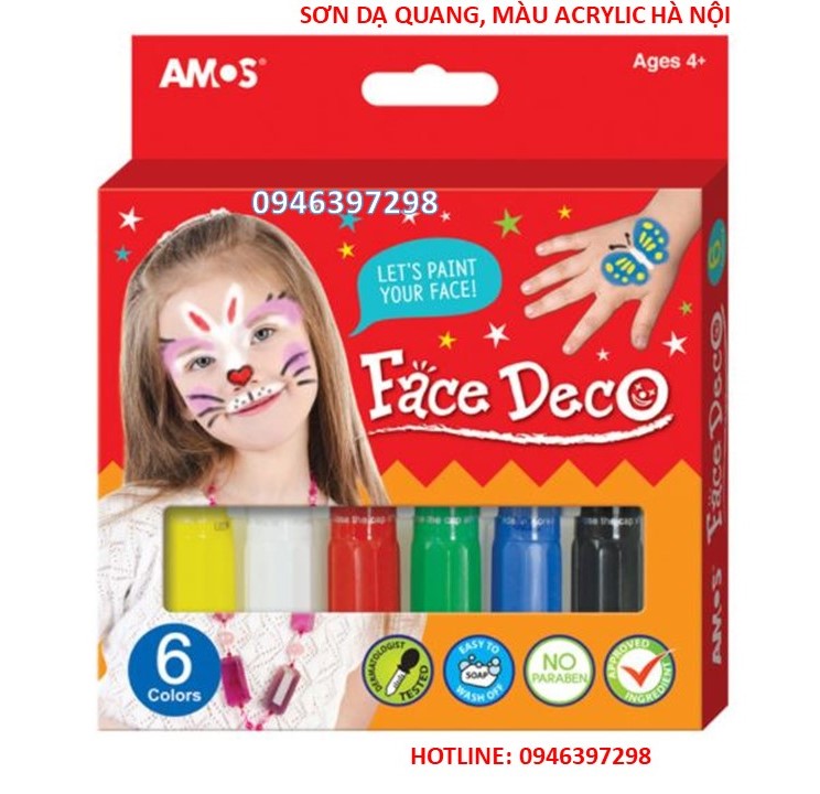 Màu vẽ mặtFace Decor AMOS Hàn Quốc là dạng màu sáp, an toàn khi sử dụng trên da. Màu ở dạng sáp, sử dụng trực tiếp mà không cần pha thêm gì khác. Màu có thể rửa dễ dàng bằng nước sạch. Màu thích hợp dùng để vẽ mặt và cơ thể, vẽ body painting, trang trí cho các sự kiện, Halloween...