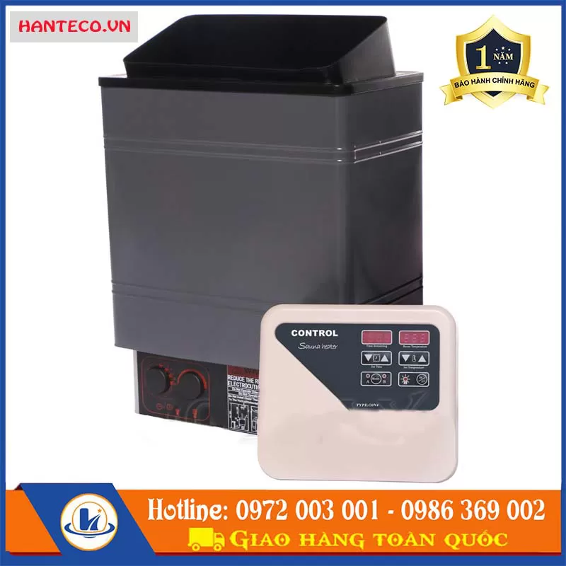 Máy xông hơi khô Amazon AM-60MI (6 kW) trang bị bảng điều khiển điện tử bên ngoài CON3, CON4 giúp điều chỉnh độ nóng, thời gian chính xác nhất.Shipping/Vận chuyển