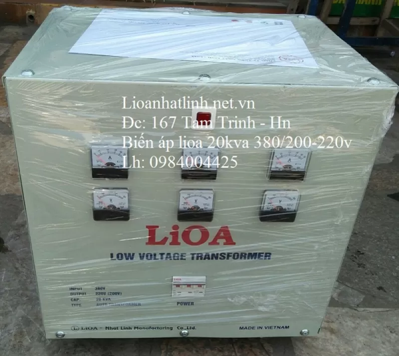 Máy biến áp 380v ra 220v 20kva do Lioa Nhật Linh sản xuất chuyên dùng cho các thiết bị điện của Nhật, Mỹ. Biến áp 3 pha 380v ra 200v 20kva bảo hành 18 tháng, giao hàng miễn phí trên toàn quốc, nhận síp COD theo yêu cầu