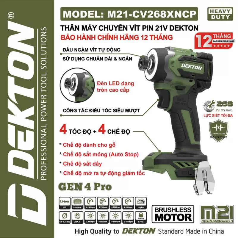 Máy chuyên vít DEKTON Gen 4 dùng pin phổ thông M21-CV268XNCP lực siết 268N.m – Phiên Bản Nâng Cấp