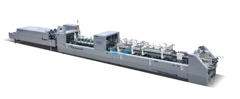 Máy dán hộp giấy YDS-800BTG dán cạnh móc đáy tốc độ lên tới 300 mét/ phút với súng bắn keo lập trình tự động 3 đầu.Shipping/Vận chuyển