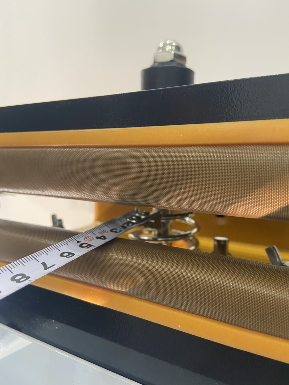 Thanh hàn: Thanh hàn đóng vai trò làm nóng và ép chặt miệng túi. Thanh hàn được làm từ chất liệu tốt, không bị nóng chảy hay hư hỏng ở nhiệt độ cao. Thanh hàn lên nhiệt nhanh, người dùng có thể sử dụng ngay sau khi cắm điện. Năng suất hoạt động làm việc của máy cao hơn nhiều so với máy hàn túi dập tay.
