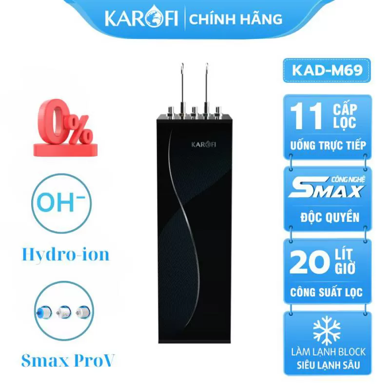 Máy lọc nước nóng lạnh nguội Karofi KAD-D69 công nghệ Zitek làm lạnh và 11 cấp ,cho khả năng làm lạnh nhanh gấp 2 lần. Giá chỉ hơn 8.000.000