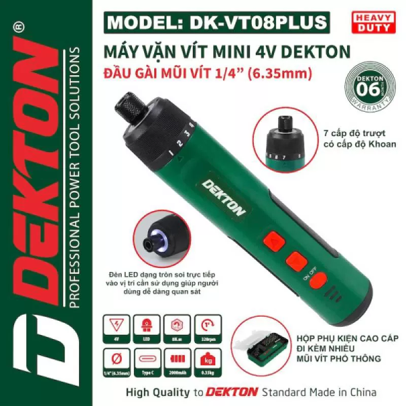 Máy Vặn Vít Mini 4V Dekton DK-VT08PLUS – 7 Cấp Trượt, Đầu 1/4