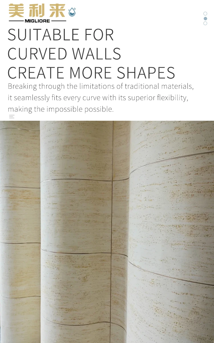 MIGLIORE Bendable Thin Stone Inorganic Ink Printed Travertine Flexible Tiles Stone Veneer Wall Panel for House Decoration