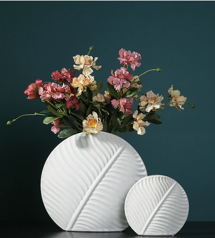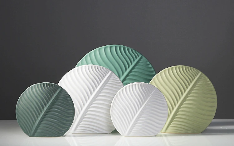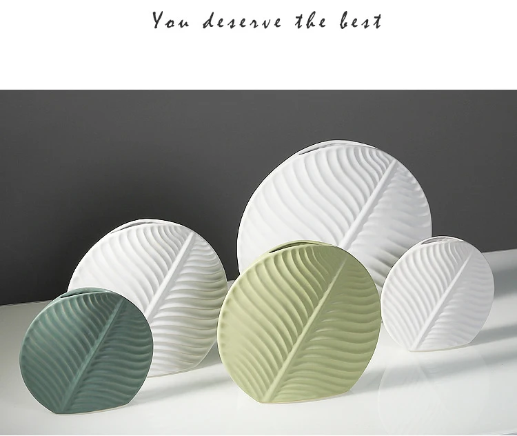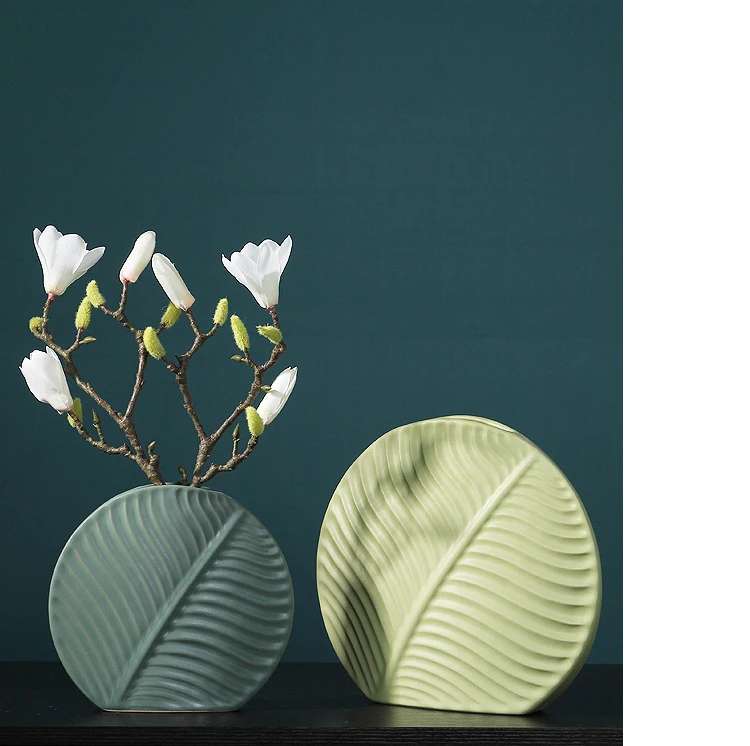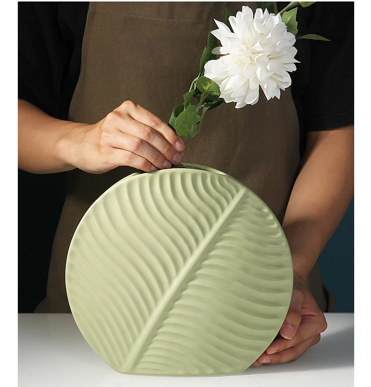 Minimalist Style Leaf Shape Vase Office Ornaments Flat Ceramic Vase for Dried Flowers
