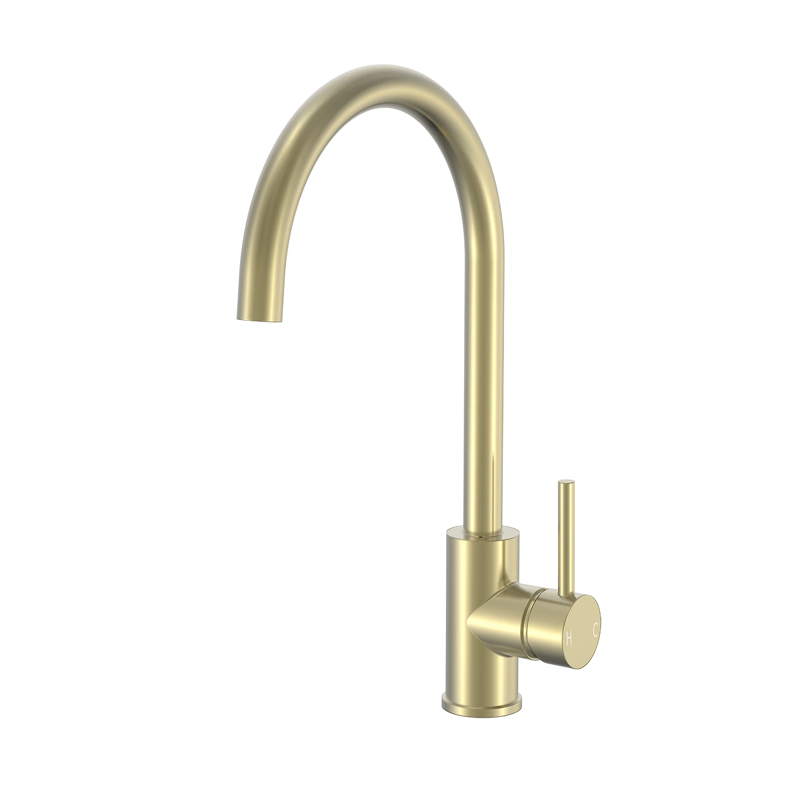 Commercial Modern High Arc Gold Single Handle Spring Swan Neck Single Hole Kitchen Faucet With Pull Down Sprayer