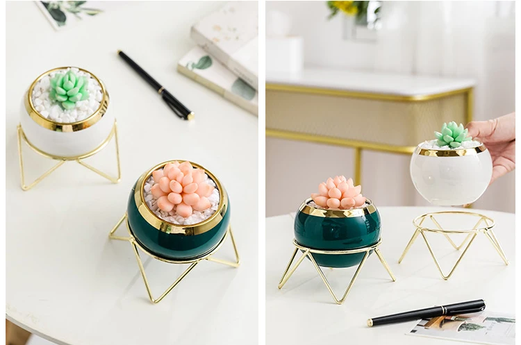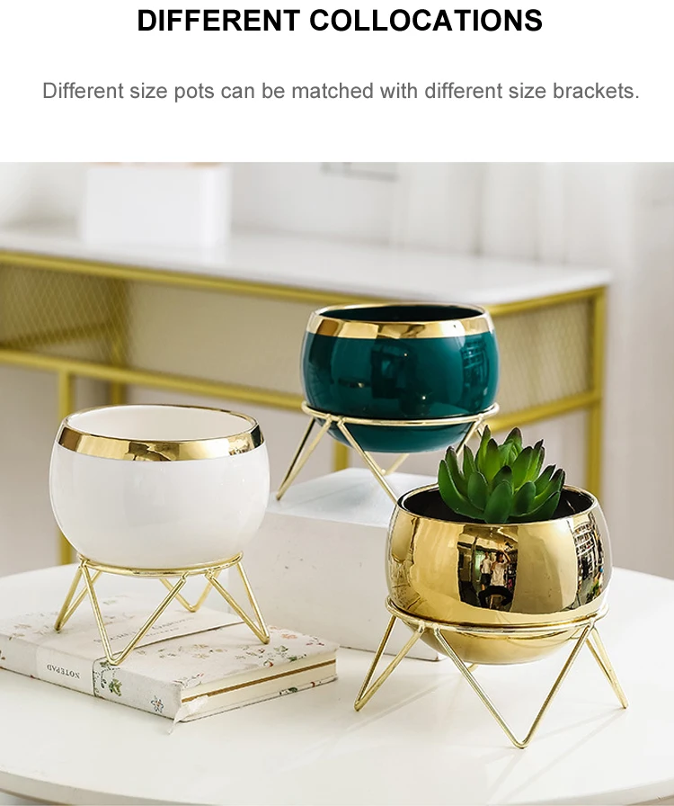 Decription | Morden Luxury Combination Decoration Succulents Ceram Flower Plant Pots With Metal Stand | ||||||