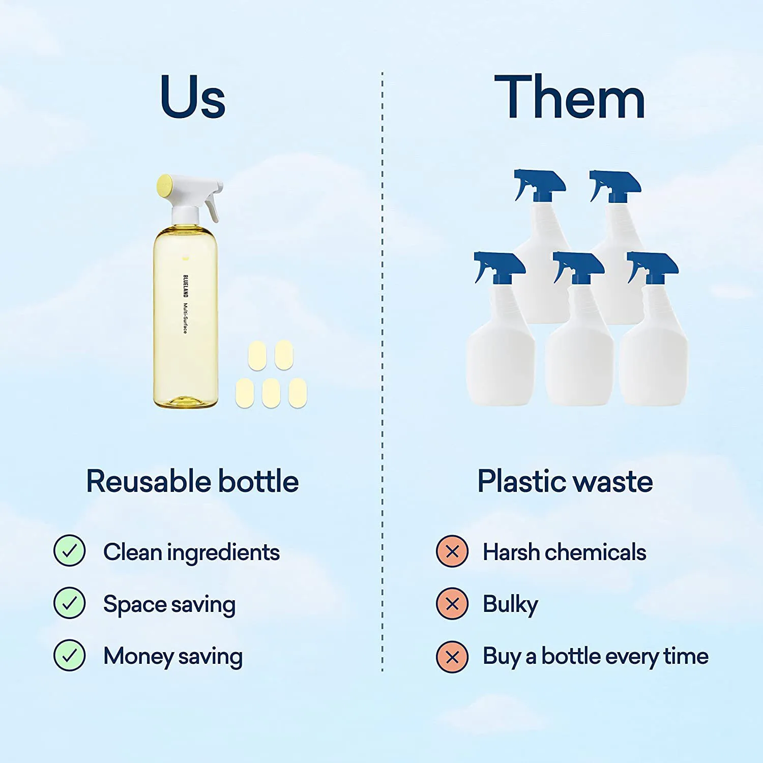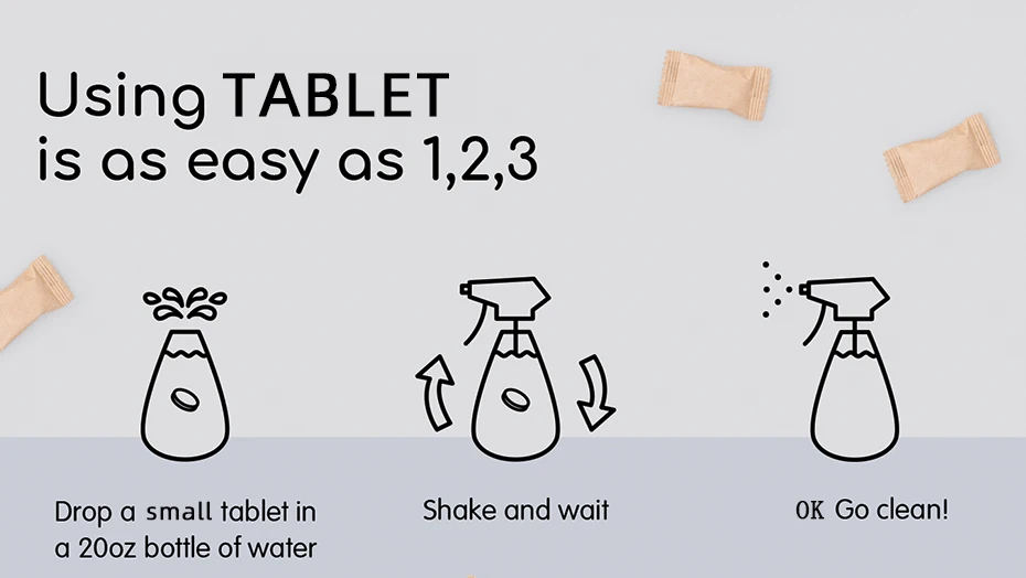 Application | 1. One 8g tablet add 250 to 350ml water with a foaming bottle 2. One 8g tablet add 500ml water with a spray bottle (For washing dishes manually) |