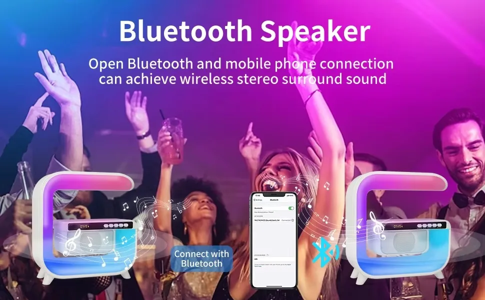 Multifunction Alarm Clock Support Fast Wireless Charging LED Atmosphere Lights BT 5.3 Wireless G Speaker