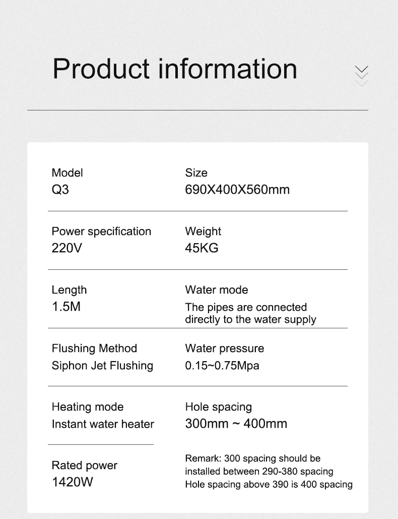 Feature | 1. Automatic open cover 2. Auto flush 3. Heated water instantly |