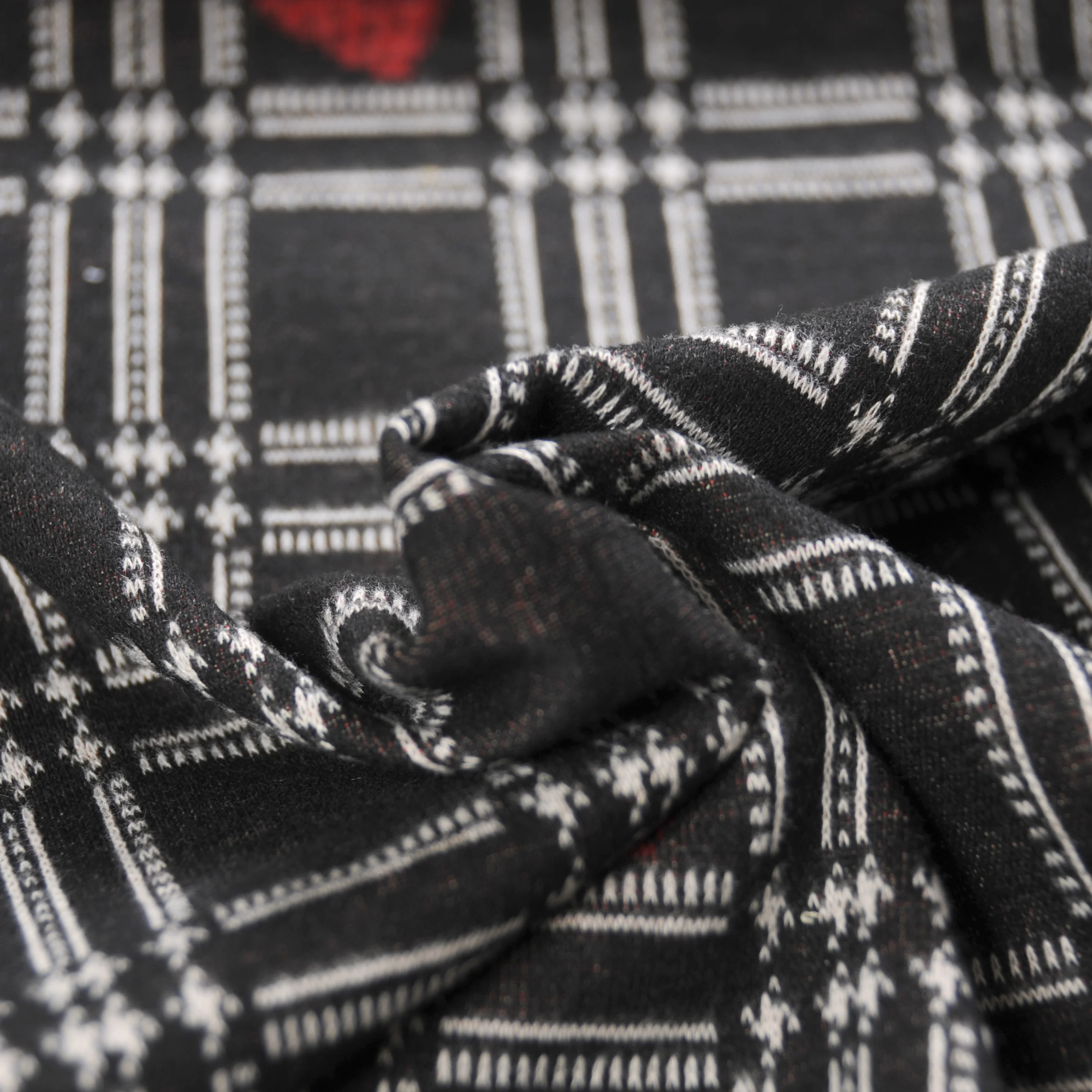 New Design Soft Yarn Dyed T/R Spandex Checker Pattern Knitted Jacquard Fabric with Brushed for Garment Dress