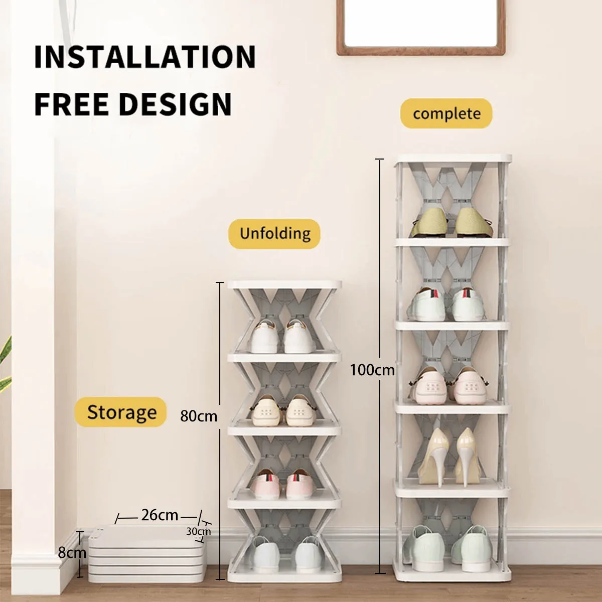 New Modern Plastic Home Simple Multifunctional Portable Household Adjustable Collapsible Folding Plastic Shoes Rack