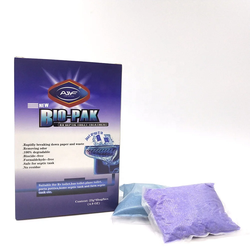 Bio-Pak is an all natural enzyme deodorizer and waste digester. A scientific breakthrough developed by the AJYF R & D group, Bio-Pak holding tank deodorizer offers unique combination of waste-breakdown performance and portion control convenience that no other natural-based sanitation product available today can match. Bio-Pak's advanced enzyme formula deodorizes,breaks down waste and is safe and beneficial for use in septic tanks. No need for special RV grade toilet paper with Bio-Pak. It will break down the toughest of toilet paper brands.
