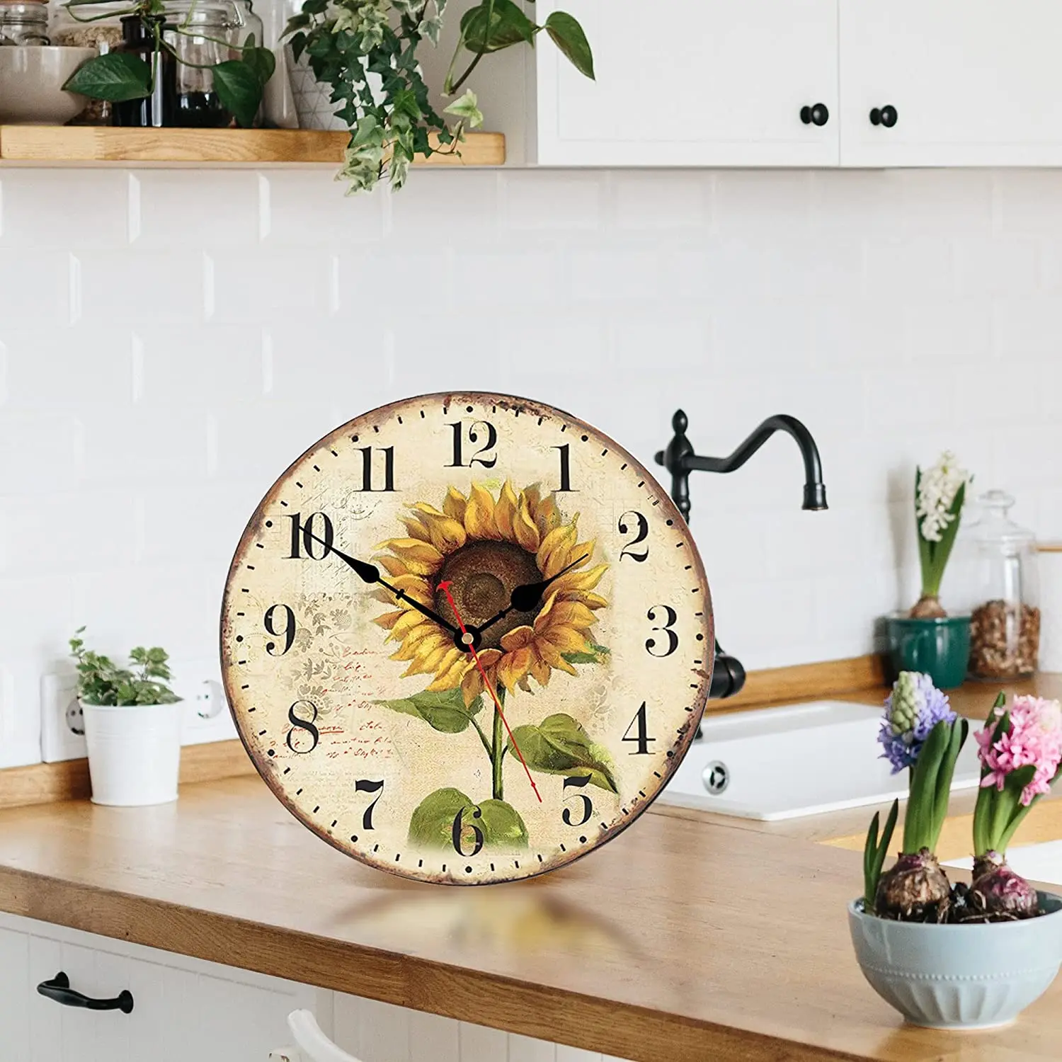 Nordic Creative Custom Logo Sunflower Flower Wall Clock Home Decor Modern Round MDF Wood Small Clocks